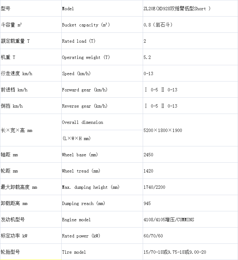 產(chǎn)品詳情 ZL20E (XD928) 2.0噸雙搖臂井下裝載機 在線咨詢 產(chǎn)品詳情 ●4108或4105增壓發(fā)動機,280型雙變。 ●工程機械專用輪邊減速橋,氣推油鉗盤式制動。 ●低型:整機寬度≤1.8米,整機高度≤1.9米(到簡易棚尺寸),整機長度≤5.2米。 高型:整機寬度≤1.8米,整機高度≤2.3米(到簡易棚尺寸),整機長度≤4.9米。 ●更窄、更矮、更短,適應(yīng)超低、超窄巷道。 ●標(biāo)配15/70-18輪胎,選裝9.75-18輪胎(整機寬度1.6米)。 ●鏟斗刃板采用耐磨500特鋼鋼板。 ●鏟斗寬度可根據(jù)用戶需求定做。 ●標(biāo)配廢氣水過濾裝置。 ●選裝氧化催化器。 ●選裝側(cè)卸裝置。 ●選裝輪胎保護鏈。